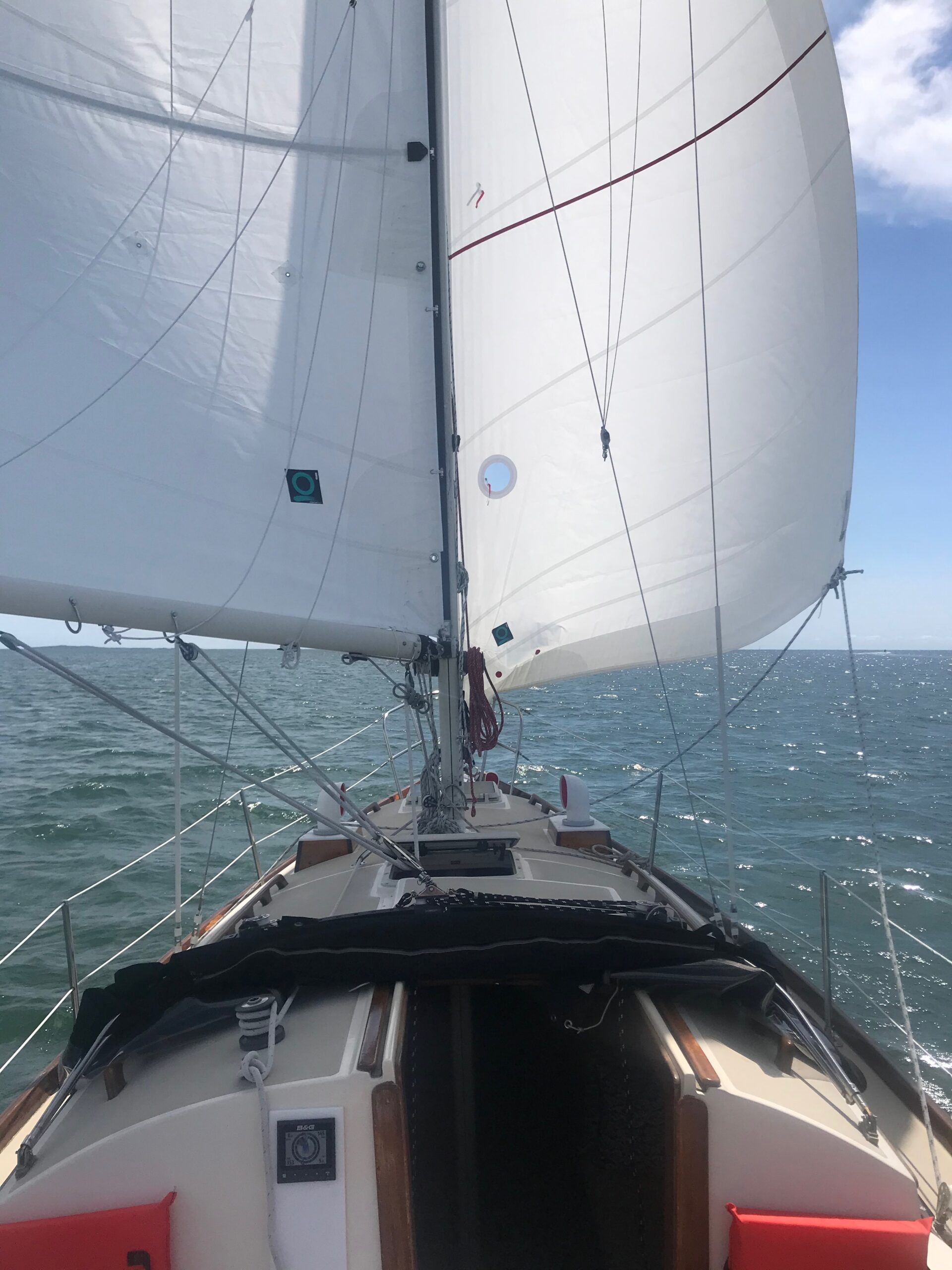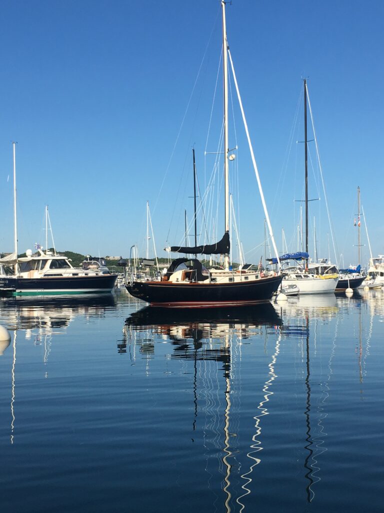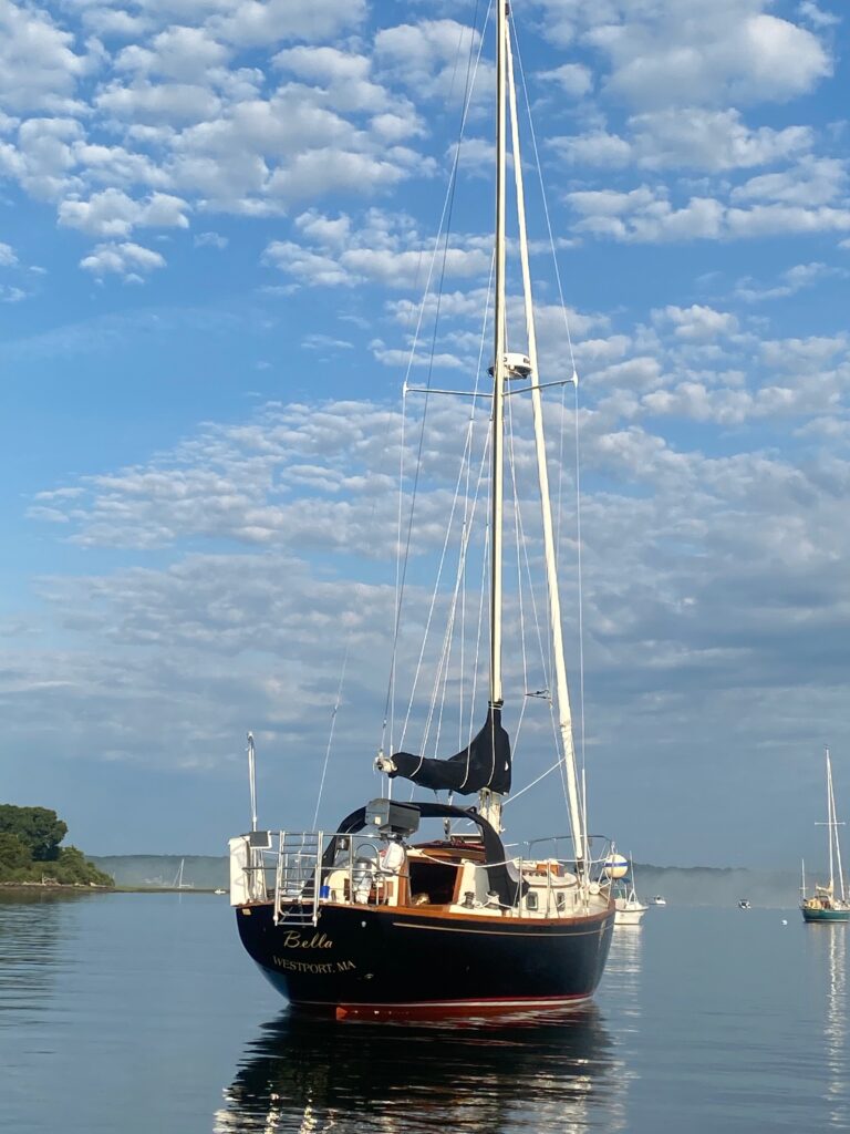 Bella is a 1985 documented Sea Sprite 30 in excellent condition. I have owned her for 6 years. She has been stored indoors, and her engine has been yard maintained. Multiple upgrades include new sails washed and stored yearly at sailmaker, Yanmar 18 hp diesel replaced the old Universal in 2006 and has about 650 hours, new complete B&G electronic package including radar, chart plotter, and instrument package, new Dickinson propane cooktop, new composting head, and brightwork in excellent condition. She is in sail away condition on a mooring at Tripp’s Marine in Westport Harbor, Mass. Buy her now and sail for the rest of the summer.